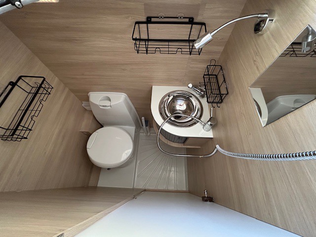 Washroom with toilet, hand basin & shower