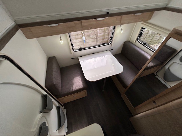 Dining area that transforms into double bed 190 x 140 cms or one single bed 190 x 94cms